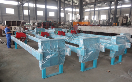 機械壓緊壓濾機壓緊時有電動機帶動減速機,經(jīng)傳動部件推動壓板壓緊濾板。壓緊螺桿和固定螺母設(shè)計有可靠的自鎖螺旋角,能保證壓緊時的可靠性和穩(wěn)定性。用電機綜合保護器實現(xiàn)自動控制??蓪﹄姍C實現(xiàn)過熱和過載保護。